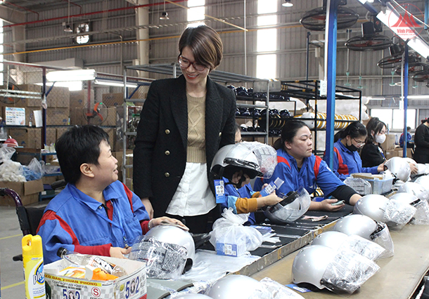 Lãnh đạo Công ty thiết bị và sản phẩm an toàn Việt Nam luôn quan tâm, động viên, nắm bắt tâm tư, nguyện vọng của người lao động. Ảnh: Dương Chung