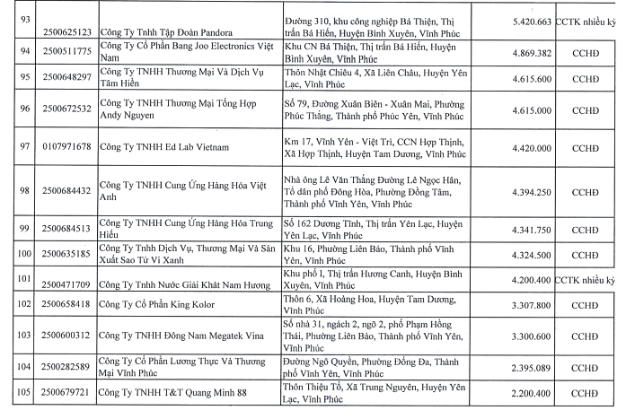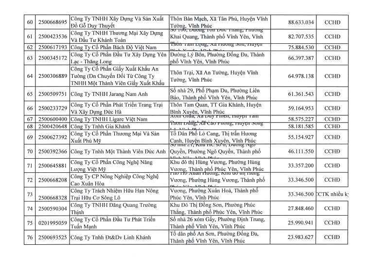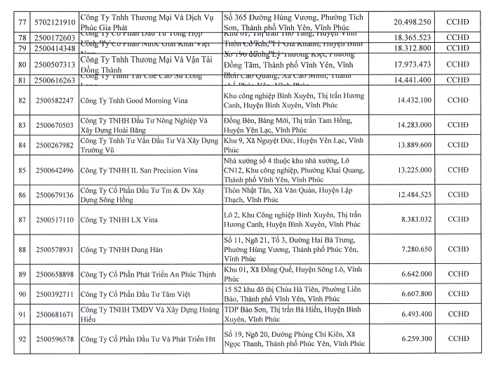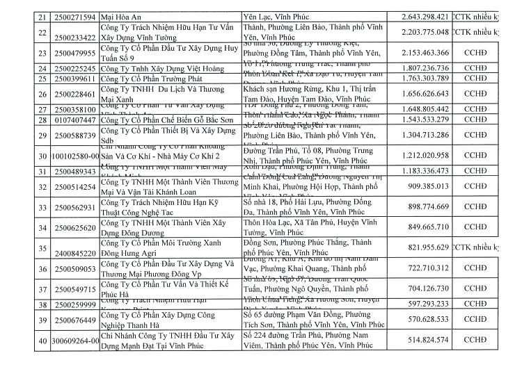 Danh sách chi tiết người nộp thuế: