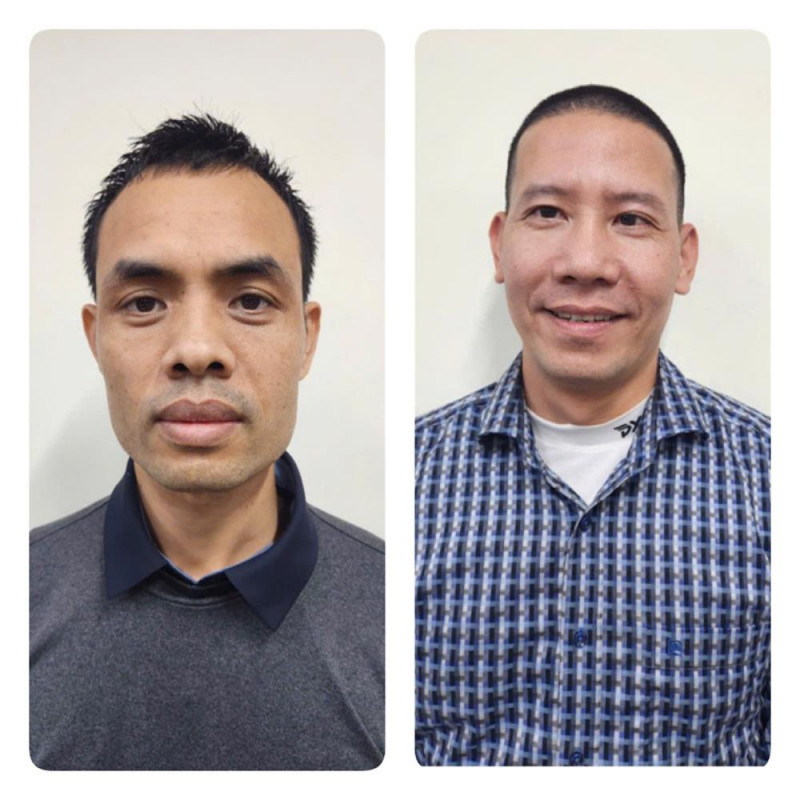 Bị can Nguyễn Văn Công và Cao Bảo Ngọc.