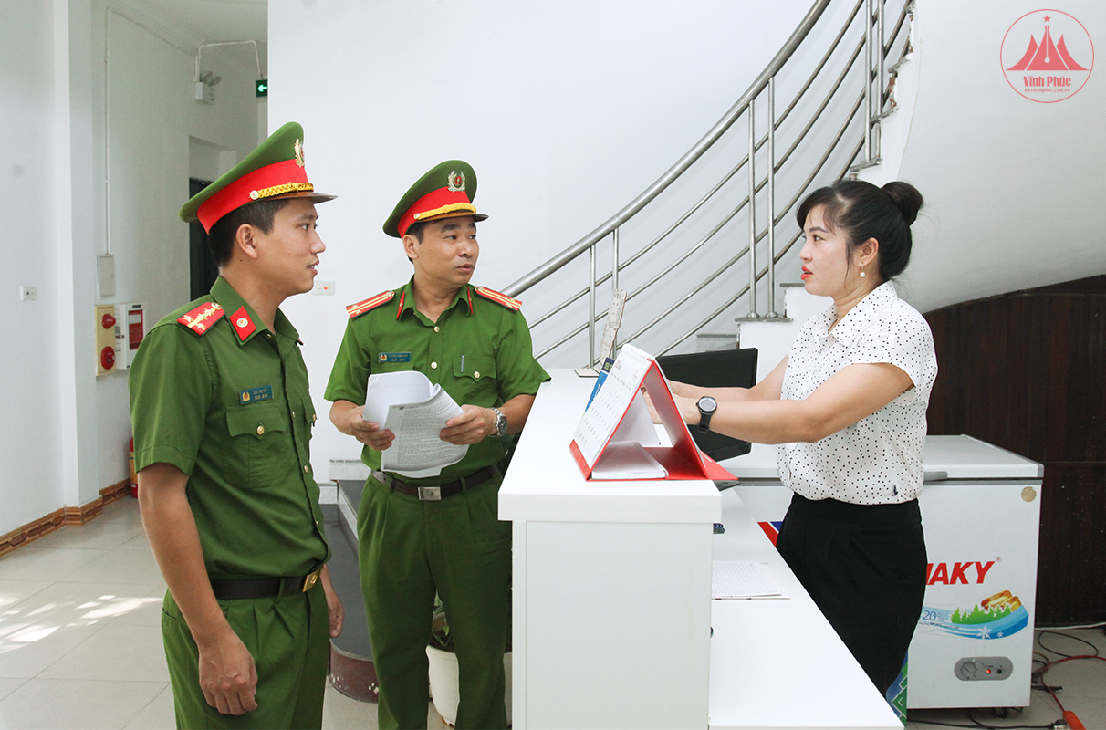 Công an phường Đống Đa (Vĩnh Yên) tăng cường kiểm tra các cơ sở kinh doanh lưu trú trên địa bàn. Ảnh: Trường Khanh